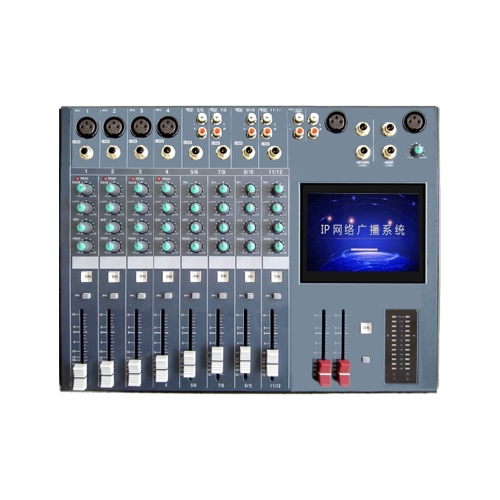 1、12路IP调音台,独特的上柜式安装设计,高档金属面板,美观大气。